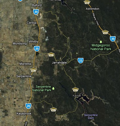 you can see nettleton rd from byford to jarrahdale, then down to the dam and out to sth west hwy.